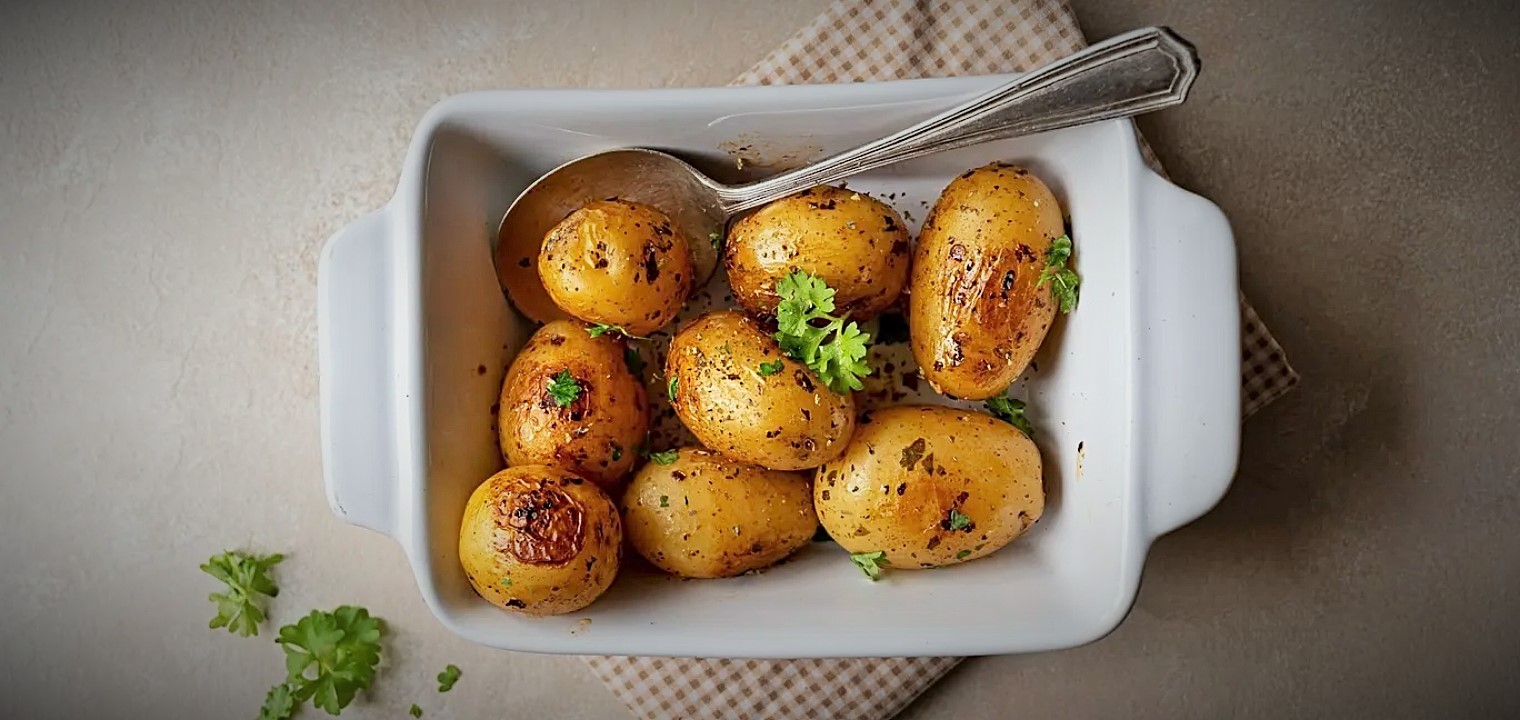 بطاطا مسلوقة محمرة في الفرن بالزبدة والاعشاب العطرية