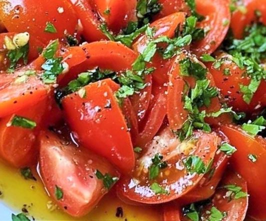 ـــ سلطة الطماطم المُتبلة الصيفية الشهية صارت جاهزة!