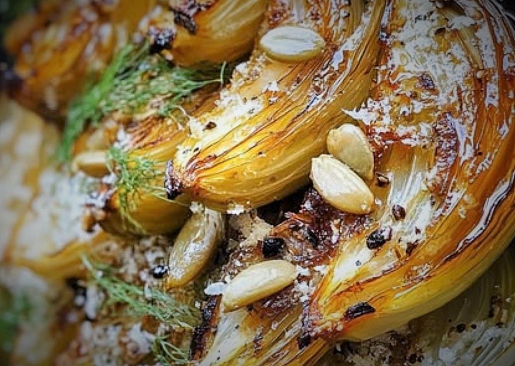 ــ نضيف الينسون ثم نقلب ونحرك، ثم نصب الشمر مع مرقه في صينية فرن مناسبة لهذه الوصفة.