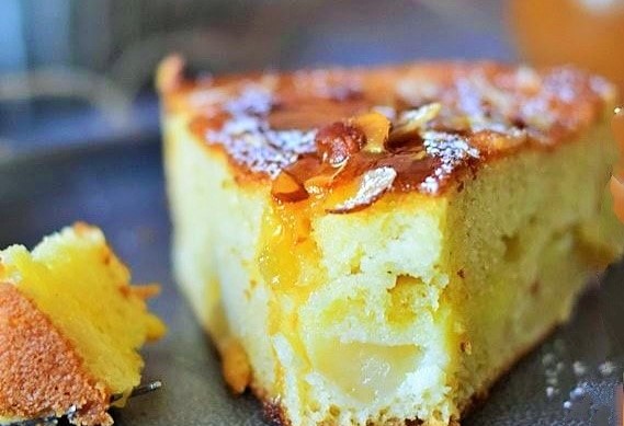 كعكة الزبادي بالإجاص ورقائق اللوز