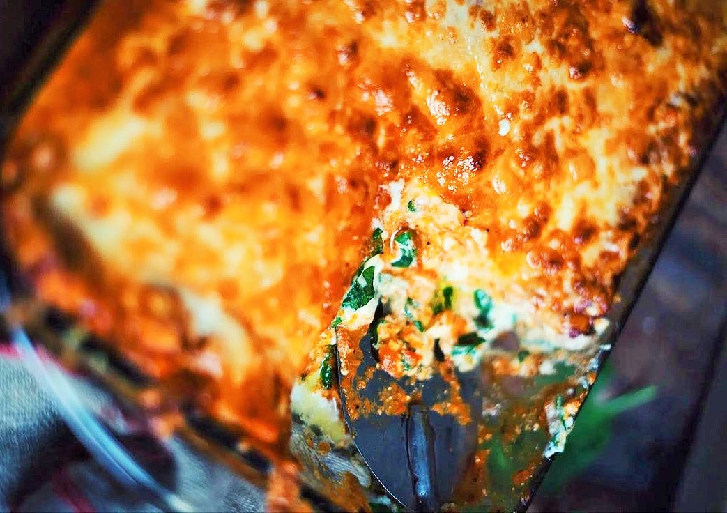 لزانيا بالسبانخ واللحم المفروم