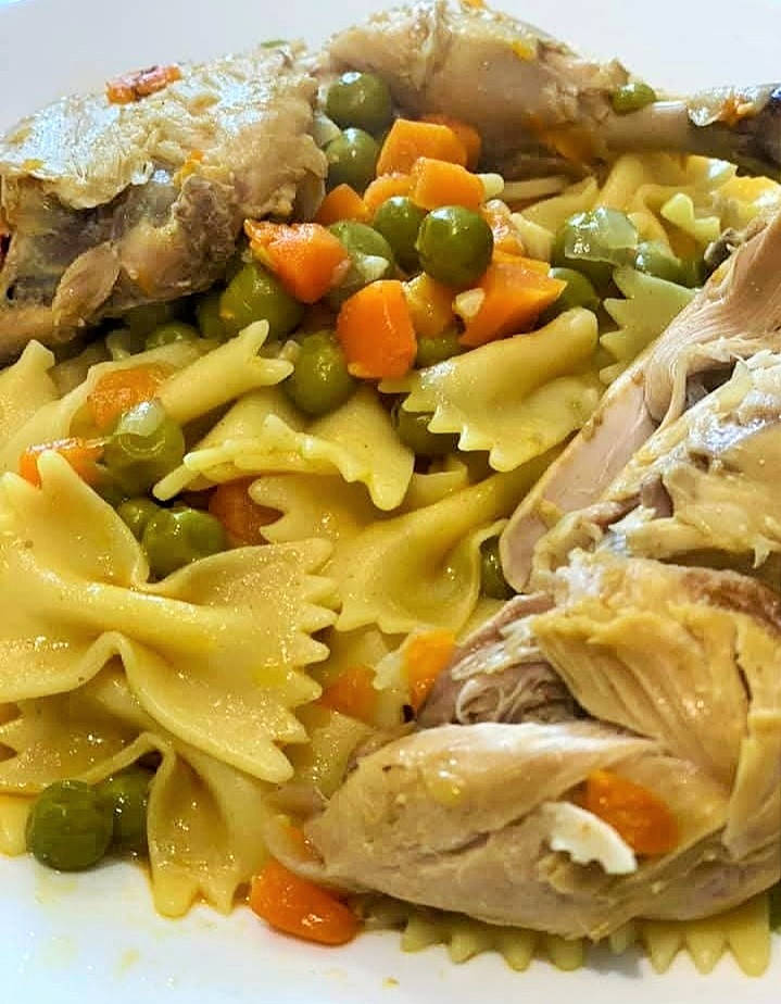 ــ معكرونة“FARFALLE” بلحم الضأن والجزر والبازلاء جاهزة!